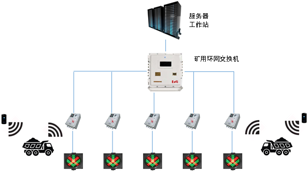 斜坡道紅綠燈智能控制系統主要解決井下斜坡道車輛定位和紅綠交通燈的控制,準確指示車輛行進或避讓(進入錯車位避讓),解決斜坡道車輛擁堵問題,并且最大限度提高井下通道的運行效率。